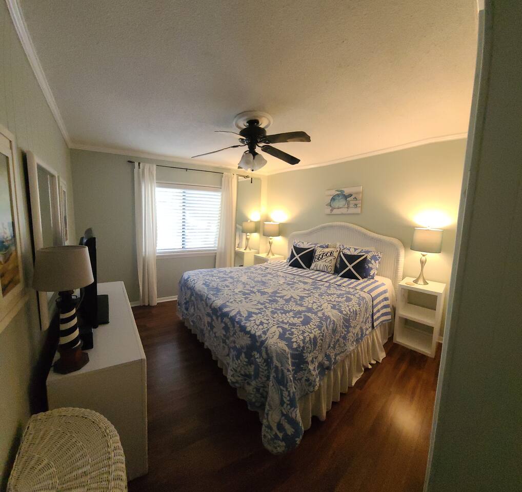 Modern beach decor highlight this well designed space. High end feel without the high end price. The balcony is perfect in the morning with your cup of coffee or in the evenings to relax with your favorite beverage. Ocean facing however one very large, beautiful tree prevents an ocean view. Just a few minute walk on resort to the beach!